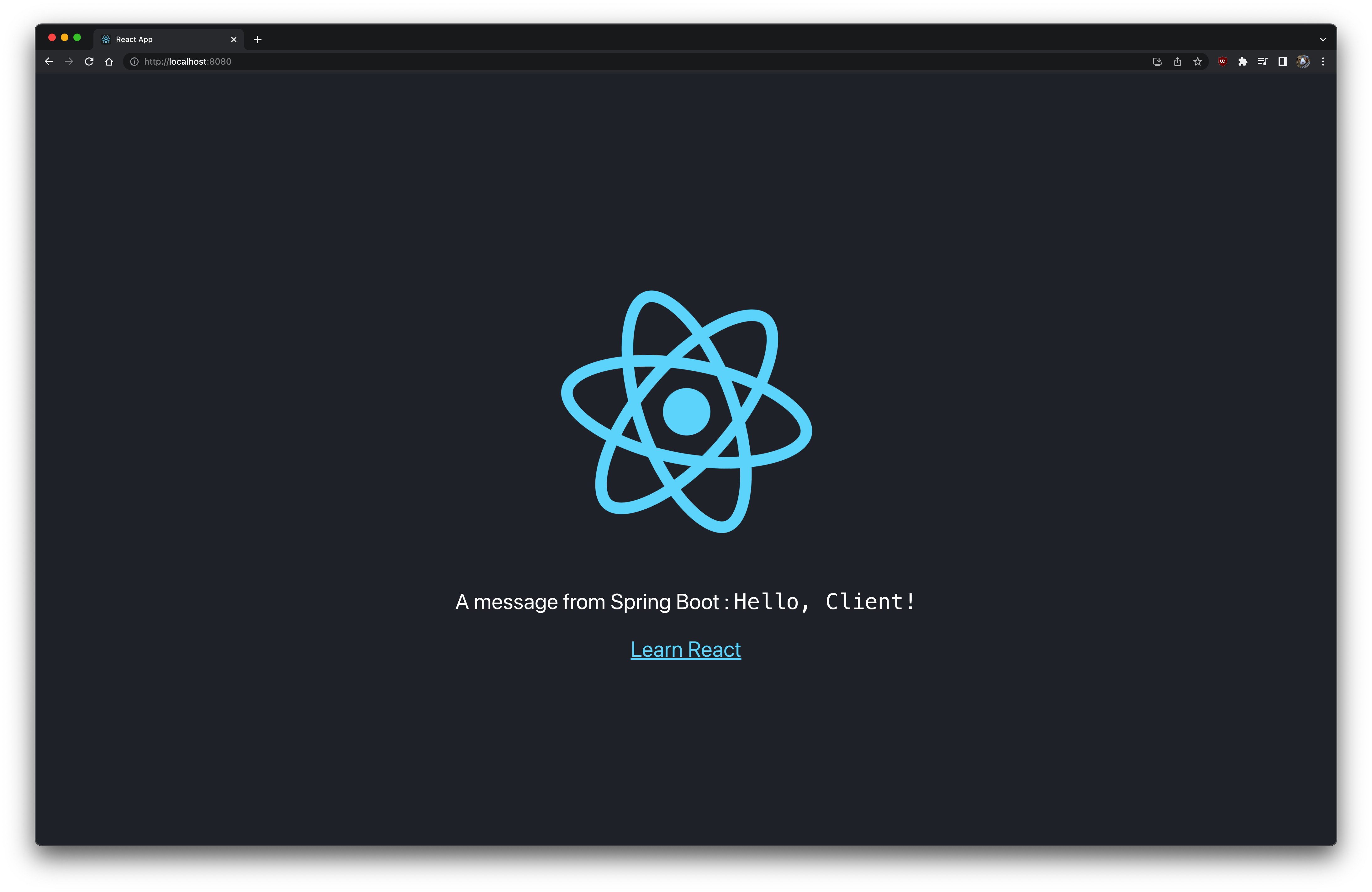 그리고 React를 새로고침하게 되면 Hello, Client! 란 메시지가 잘 전달되는 것을 알 수 있다.